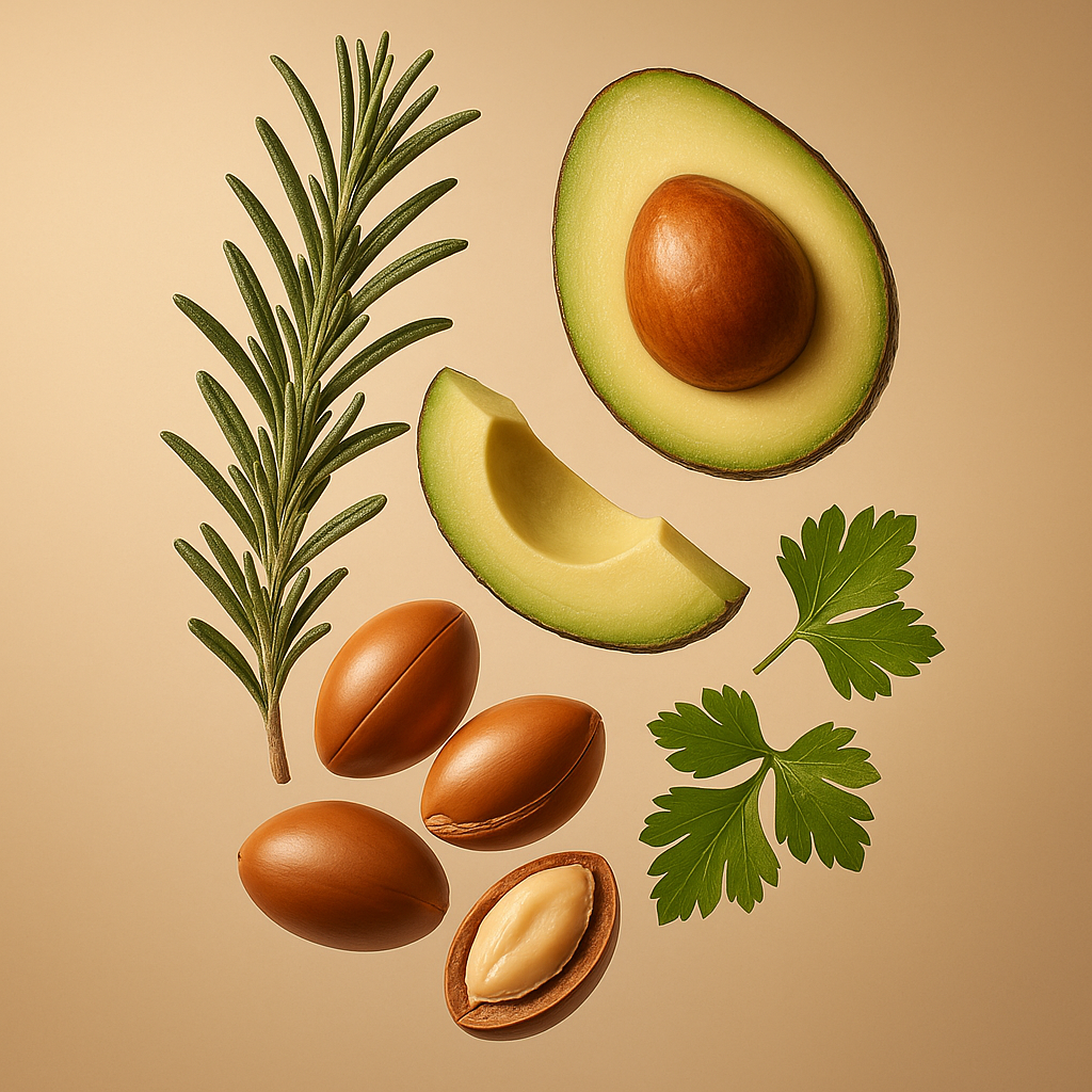 Pflegende Öle wie Arganöl, Avocadoöl, Mandelöl, Kokosöl und Olivenöl spenden intensive Feuchtigkeit, glätten die Haarstruktur und verleihen dem Haar gesunden Glanz.